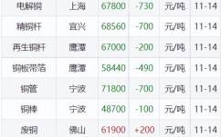 11月14日铜铅铝锌等原材料价格